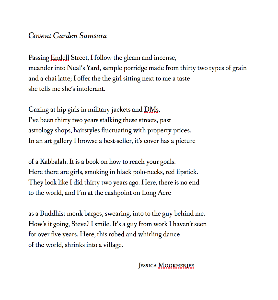 After that, we read some poems in which the big becomes small and the small becomes big. Miroslav Holub wrote a poem called The Forest, where all the enormous rocks become tiny in the face of a little mushroom that’s never been seen before. So the lunchtime exercise was to go out and find something really tiny and something so big you can’t fit it in your head or on the page, and then combine those in the draft of a poem. We then went back to the collages and wrote another poem in response to someones else’s collage, whose story we didn’t know.